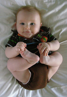 to play with them. The first time I saw you grab them was on the changing table a week or two ago. You giggled and giggled at your new accomplishment. I was so proud.